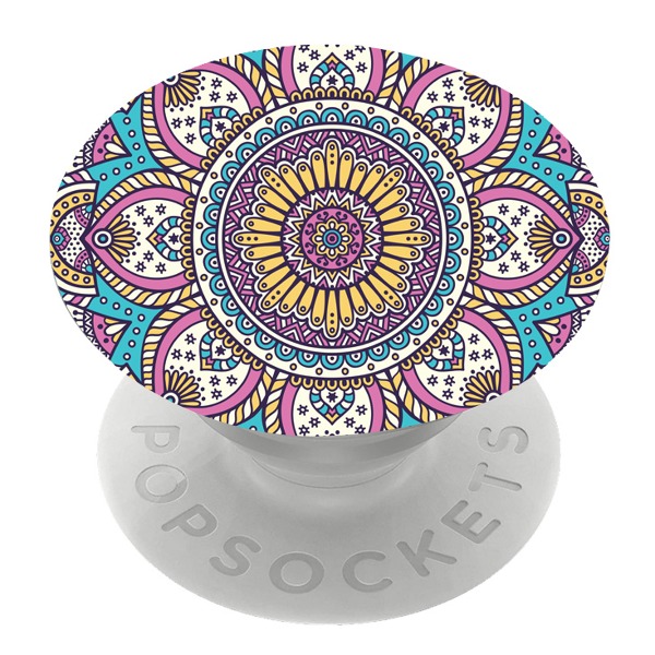 Бял PopSocket с мотив - Цветна мандала