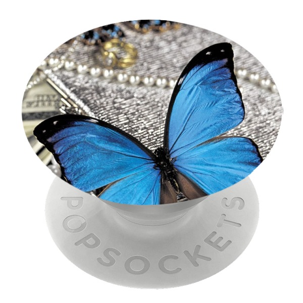 Бял PopSocket с мотив - Синя пеперуда със скъпоценни камъни