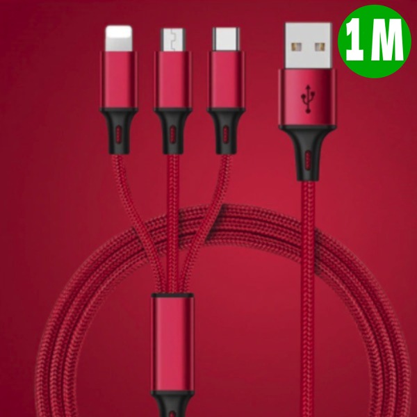 Бързозареждащ кабел 3в1 - Червен
