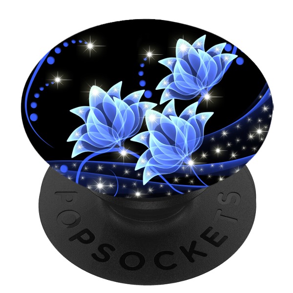 Черен PopSocket с мотив - Сини цветя