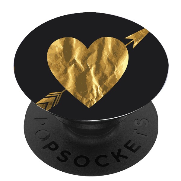 Черен PopSocket с мотив - Златно сърце със стрела