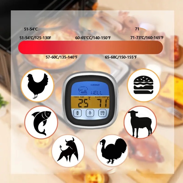 Цифров термометър за месо със сензор и аларма