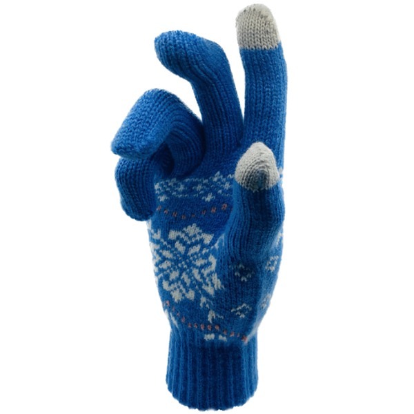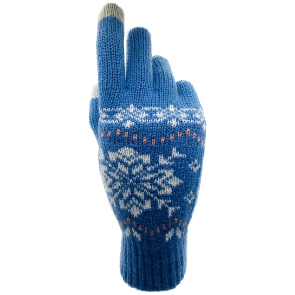 Дебели зимни ръкавици за тъч екрани - Снежинка, Сини