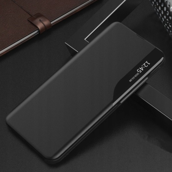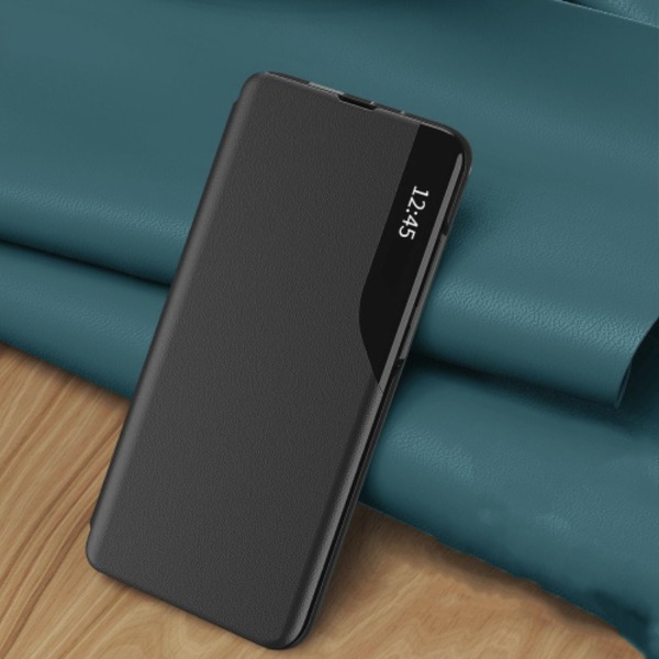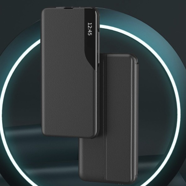 Калъфът от серията Smart View на Tech-Protect е изработен от висококачествена синтетична кожа, обвита около поликарбонатна обвивка. Той е устойчив и удобен за употреба, с отвор на предната част за говорителя на телефона, което ви позволява да използвате телефона дори със затворен калъф. Капакът разполага с интегриран магнит и стъклена плочка, на която се показва часът след инсталиране на приложението. Калъфът пасва перфектно и не ограничава безжичното зареждане.