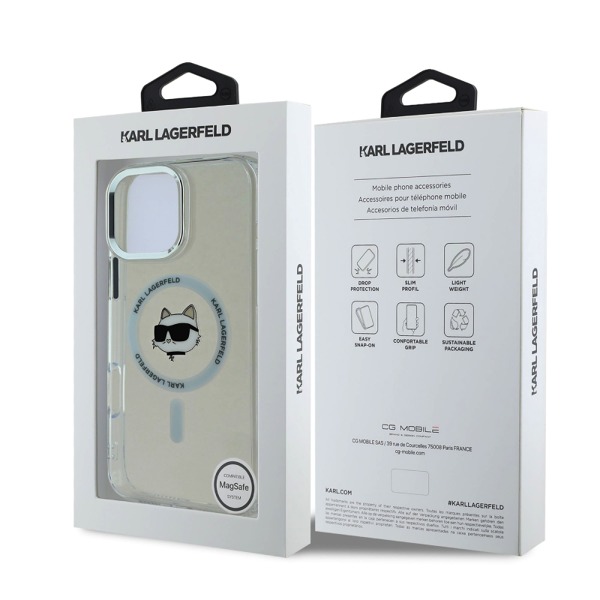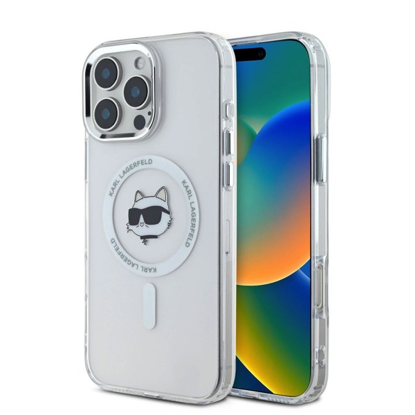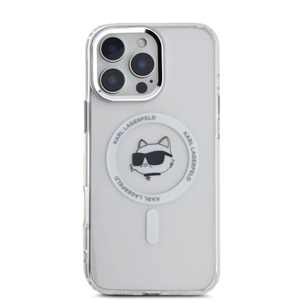 Кейс Karl Lagerfeld Apple iPhone 16 Pro Max hardcase IML Metal Choupette Head MagSafe - Бял