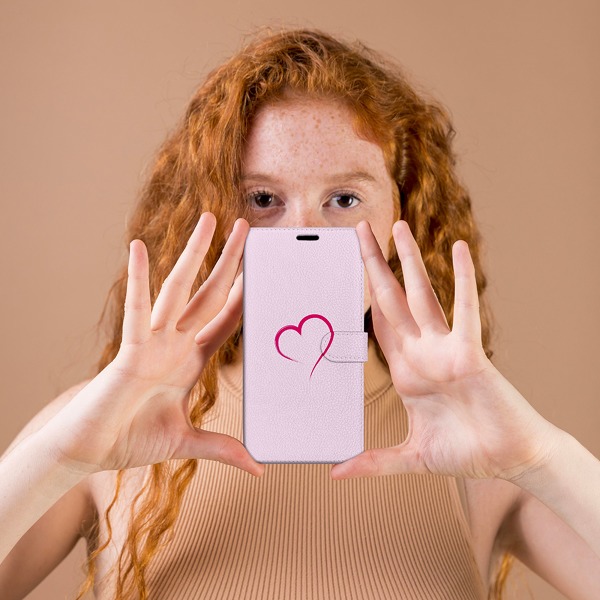 Книжков калъф за iPhone 12 Pro - Розово сърце