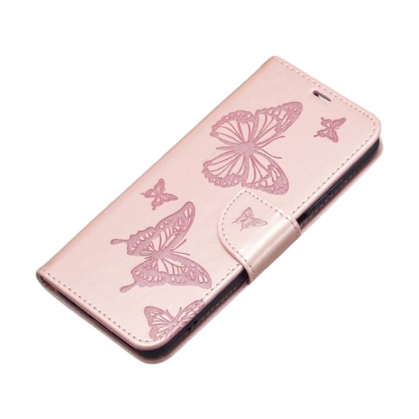 Книжков калъф за iPhone 16 - Пеперуди, Розово златен