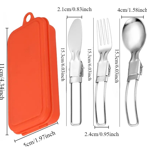 Открийте удобен комплект от 3 преносими сгъваеми ножа и вилици, изработени от висококачествена полирана неръждаема стомана. Тези прибори за хранене съчетават издръжливост, стил и функционалност, което ги прави идеални за къмпинг, туризъм, пикник, пътуване и ежедневна употреба.
