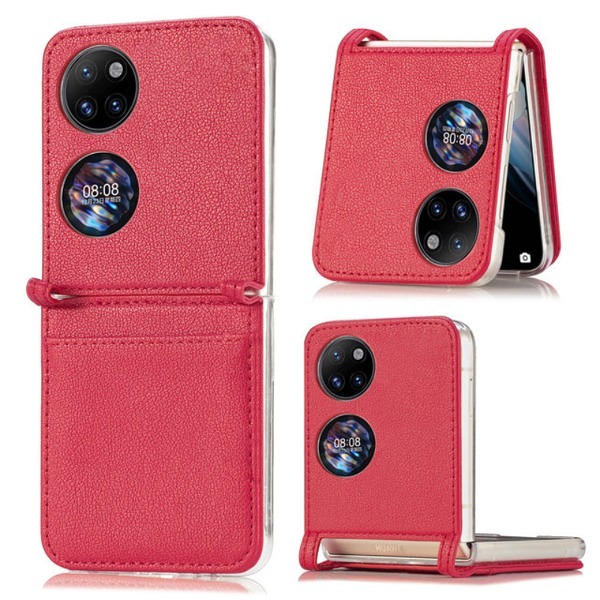 Кожен калъф за Huawei P50 Pocket - Червен