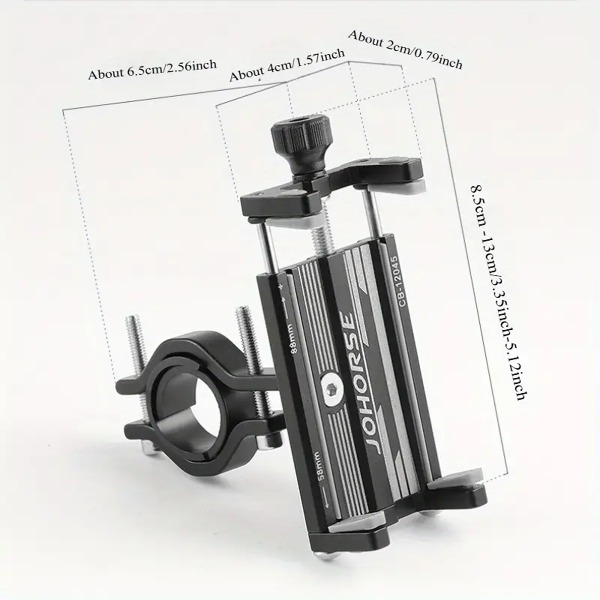 Основната структура е изработена от висококачествена алуминиева сплав, която е устойчива на износване, атмосферни влияния и удари. Фиксираната скоба осигурява стабилно закрепване към кормила с диаметър 22-32 мм, а сглобяването е лесно и не изисква специални инструменти. Неплъзгащите се подложки от вътрешната страна на стойката предпазват телефона от надраскване и предотвратяват изплъзване дори при резки маневри или неравни пътни условия.
