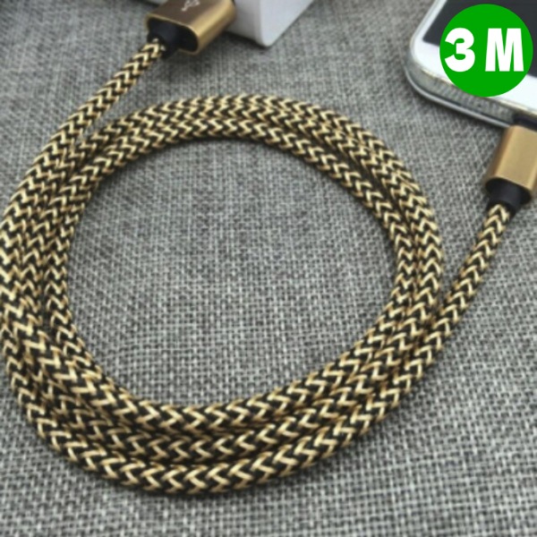 Метален заряден кабел USB Micro - Златист, 3 метра