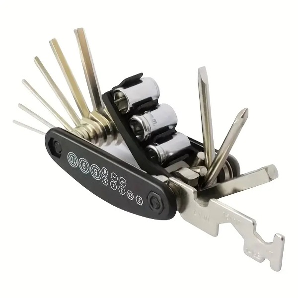 Този компактен многофункционален инструмент за колоездене е незаменим спътник за всеки колоездач, който иска да бъде подготвен за всяка ситуация на пътя. Удобният комплект 16в1 предлага всичко, което ви е необходимо за рутинна поддръжка, бързи ремонти и по-сложни интервенции на терен. Благодарение на компактния си размер той се побира лесно в джоба, чантата за велосипед или раницата и е винаги под ръка, когато имате най-голяма нужда от него.