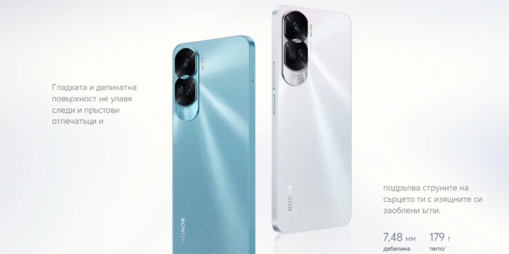 Honor 90 Lite 5G се отличава с модерен и минималистичен дизайн. Телефонът е с размери 162,9 x 74,5 x 7,48 мм и тежи само 179 грама, което го прави лек и удобен за носене и употреба с една ръка. Задната част на телефона е гладка и лъскава, придавайки му премиум външен вид, който е рядкост в този ценови клас. В допълнение, телефонът разполага с четец на пръстови отпечатъци за по-бързо и сигурно отключване. Компактният и елегантен дизайн го прави подходящ както за ежедневни задачи, така и за специални поводи.
