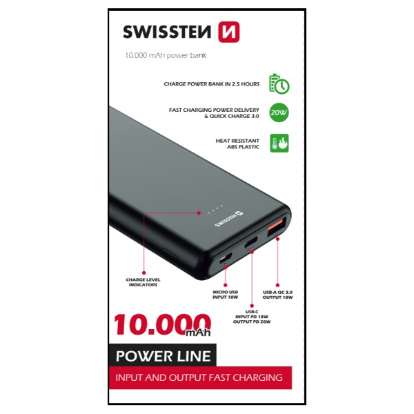 Swissten power Line външна батерия - 10 000 mAh