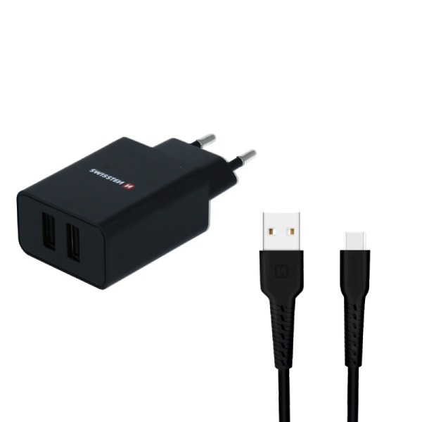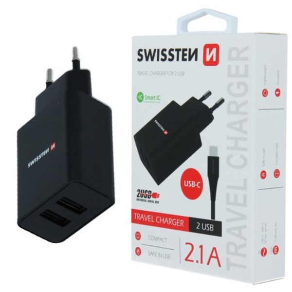 Swissten зарядно устройство 2.1A с кабел USB-C - Черно