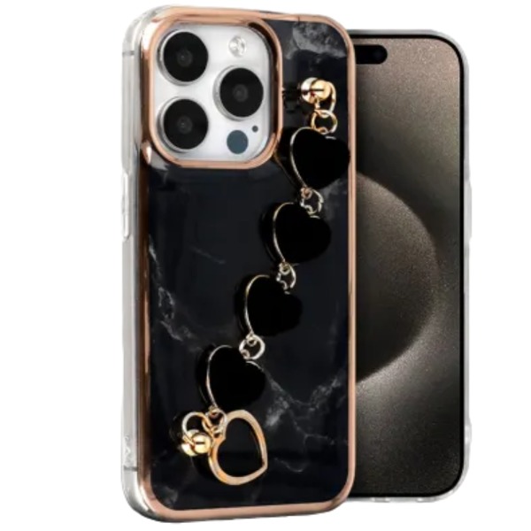 Заден силиконов кейс Glamour Strap за iPhone 15 Pro Max - Черен